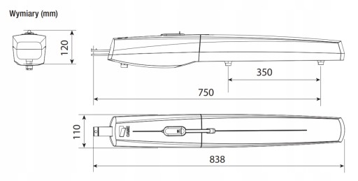 Gotowym do samodzielnego montażu zestaw przeznaczonym do bram 2-skrzydłowych do 4 m (długość skrzydła 2 m).