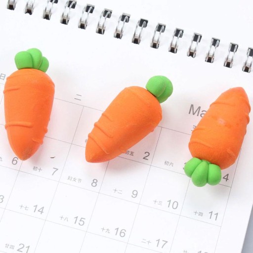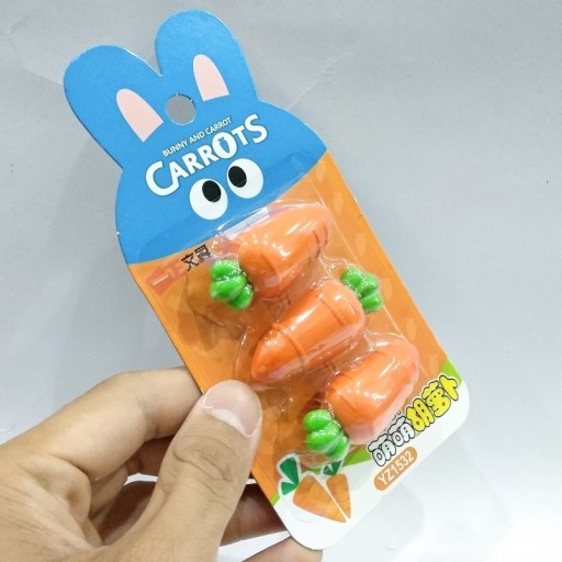 Komplet gumek do ścierania w kształcie marchewek. 3szt w jednym zestawie w jednej cenie.