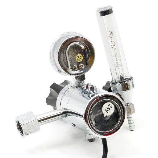 Reduktor butlowy z podgrzewaczem, przeznaczony do dwutlenku węgla CO2. Wbudowany podgrzewacz zapobiega zamarzaniu zaworu butli i reduktora podczas przepływu gazu.