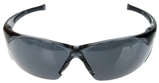 Przyciemnione okulary ochronne BOLLE RUSH Smoke PC ASAF Cord o wytrzymałości mechanicznej szyb pozwalającej chronić oczy przed odłamkami, rykoszetami i innymi nadlatującymi obiektami wg. klasy F (obiektu o wadze 0,86 g poruszającego się z prędkością 45 m/s) i T (rozżarzonymi drobinami).