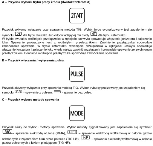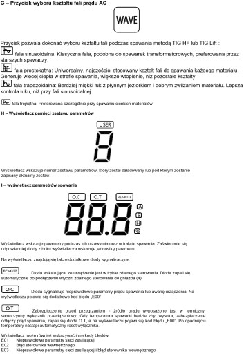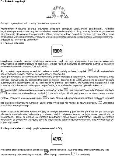 - Instrukcja obsługi w języku polskim całej spawarki oraz wszystkich funkcji