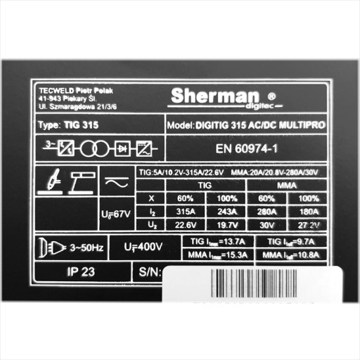 SHERMAN DIGITIG 315 AC/DC MULTIPRO - NOWOCZESNA TECHNOLOGIA W ŚWIETNEJ CENIE!