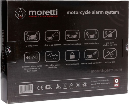 Alarm Motocyklowy/Skuterowy Moretti Uniwerslany z podtrzymaniem i Syreną 125dB