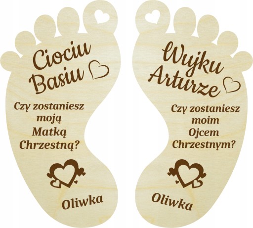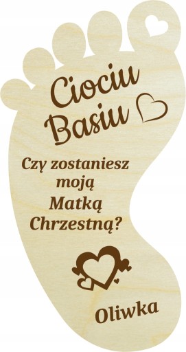 Podaj wzór, imię przyszłego Ojca Chrzestnego lub przyszłej Matki Chrzestnej oraz imię chrzczonego dziecka.