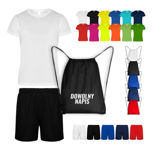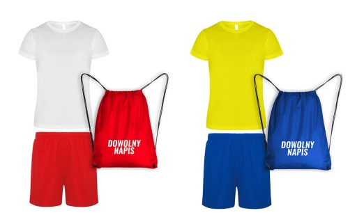 Po zamówieniu w wiadomości do sprzedającego prosimy podać kolory (kod pod zdjęciem) spodenek, koszulki, worka oraz rodzaj wybranej czcionki.