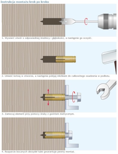 - radełkowana powierzchnia kotwy, zapewniająca lepszą przyczepność do ścianek otworu i uniemożliwiaca obracanie się kotwy podczas montażu,