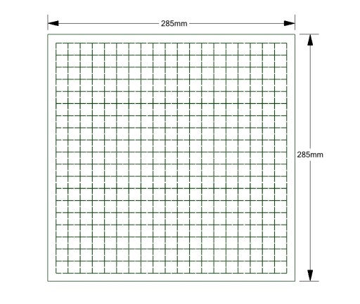 Pianka rastrowa podzielona jest na 361 kwadraty o boku 14 mm, pomiędzy którymi pozostawione zostały 1 mm połączenia przez co pianka tworzy zwartą całość.