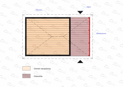 - Drewutnia: 300×100 cm (wejście od przodu i tyłu)