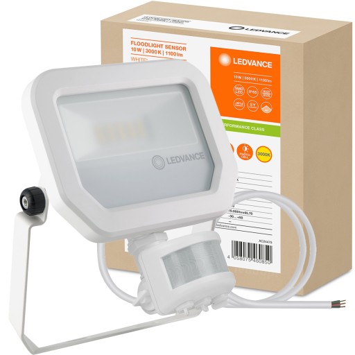 Naświetlacz LED z czujnikiem ruchu i w białym kolorze, to produkt wysokiej jakości marki Ledvance. Oprawa LED charakteryzuje się zgrabnym oraz eleganckim wyglądem idącym w parze z niezwykłą trwałością. Naświetlacz LED emituje światło o mocy 10 W, strumieniu świetlnym 1100 lm oraz o ciepłej białej barwie światła (3000 K), która budzi pozytywne odczucia. Czujnik ruchu, który jest dołączony do lampy, posiada możliwość regulacji aż o 350°, oraz pochylenia o 180°. Ponadto bardzo łatwo można go wyregulować i dostosować zakres wykrywania światła oraz czas pracy. Reflektor posiada aluminiową obudowę oraz matowy klosz wykonany z hartowanego szkła, który zapewnia równomierne oświetlenie. Naświetlacz z czujnikiem dzięki ochronie wynoszącej IP65 jest odporny na pył i wodę, dzięki czemu może być stosowany jako oświetlenie zewnętrzne. Naświetlacz świetnie sprawdzi się wszędzie tam, gdzie potrzeba niezawodnego i trwałego źródła światła.