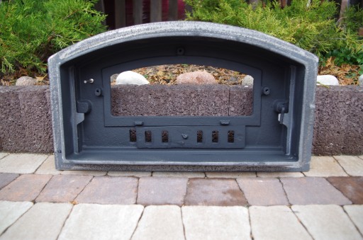 Drzwiczki hermetyczne żeliwne półokrągłe z szybą żaroodporną na 800°C do pizzy, pieca chlebowego itp.
