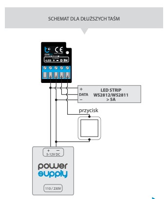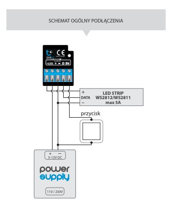 - Rodzaj taśmy LED: cyfrowa RGB, 5V lub 12V (WS2812/WS2811-bez sygnału zegarowego)