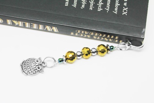 Elegancka zakładka do książki z zawieszką w kształcie sowy z dodatkiem akrylowych koralików i zielonego hematytu.