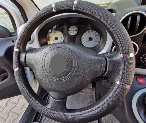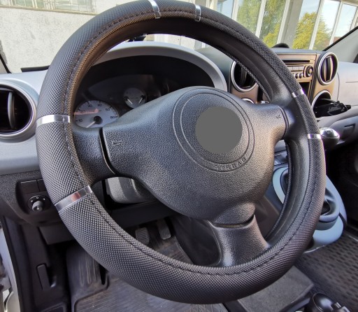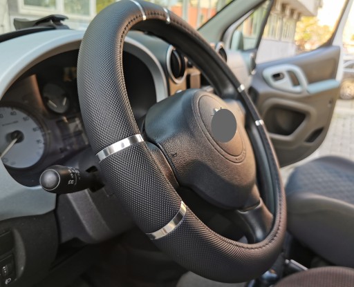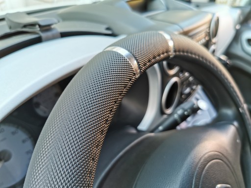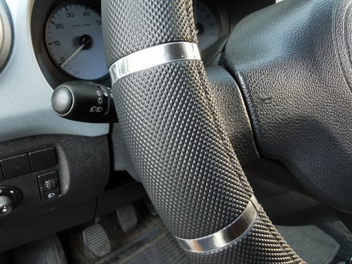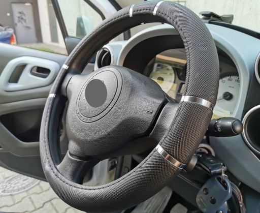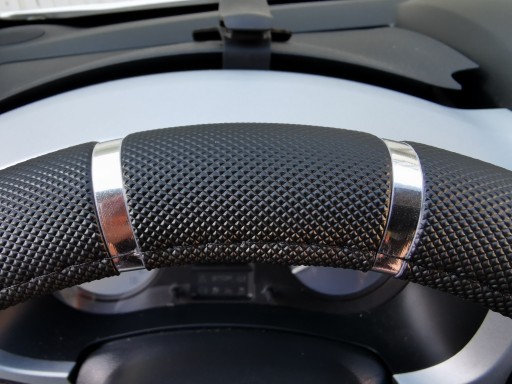 Pokrowiec doskonale prezentuje się na kierownicy w aucie. (poniżej zdjęcia)