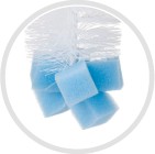 Większa szczotka posiada gąbkę, która pozwala na wygodne mycie dna butelek.