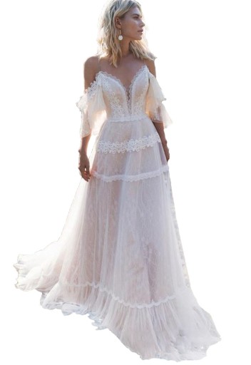 suknia ślubna linia-A, kolor jak na zdjęciach, wewnętrzna warstwa - jasny beż