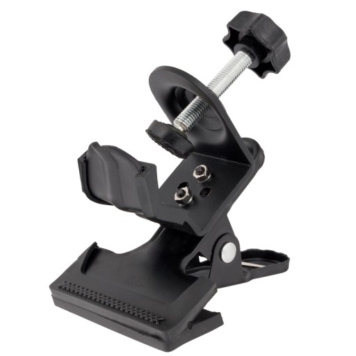 Uchwyt śrubowy z klipsem pozwoli na przymocowanie dodatkowego oświetlenia, blendy lub innych akcesoriów fotograficznych. Śruba zacisku pozwala na mocowanie na płaszczyznach, szynach lub kolumnach o grubości do 38 mm. Uchwyt zamontujesz na stole bezcieniowym lub powyżej fotografowanej sceny. Niezastąpiony na wyposażeniu każdego studio.