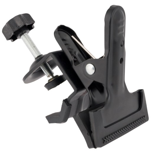Uchwyt zamontujesz do płaszczyzny stołu bezcieniowego, szyn, poprzeczek, kolumny statywu. Klips przytrzyma m.in.: tło, blendę, powierzchnię dyfuzyjną, inne modyfikatory oświetlenia.