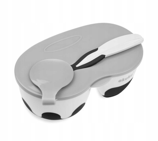Akuku Miseczka Dwukomorwa Z Łyżeczką WHITE-BLACK 0428