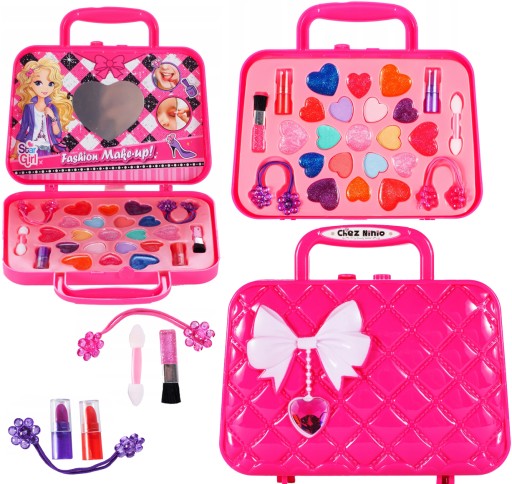Zestaw do makijażu dla dziewczynek, które interesują się kosmetyką, idealny, by rozpocząć przygodę z wizażem! Posiada szeroki wachlarz akcesoriów w różnych kolorach, które pozwolą dziecku tworzyć dowolną stylizację.