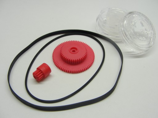 ZESTAW ZAWIERA: ZĘBATKĘ KOŁA ZAMACHOWEGO, ZĘBATKĘ POŚREDNIĄ, PASEK NAPĘDOWY PŁASKI, PASEK LICZNIKA, SMAR SILIKONOWY.