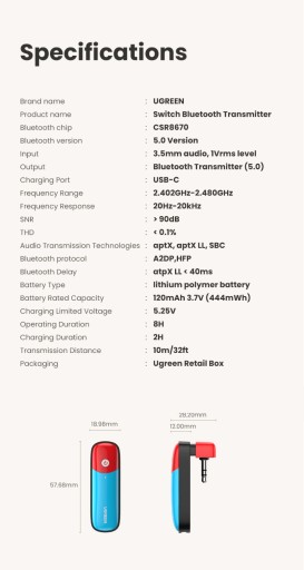Передатчик Ugreen BT Audio Nintendo Switch APTX