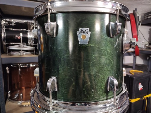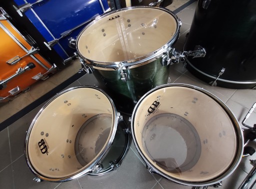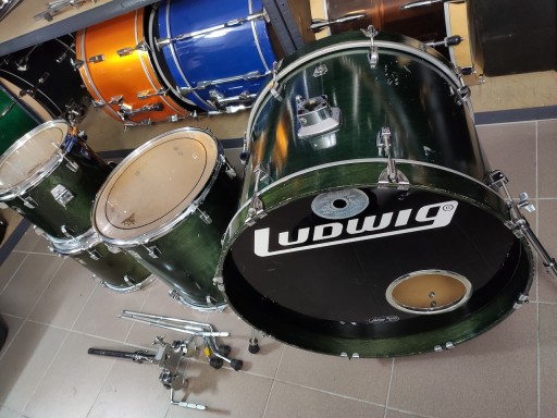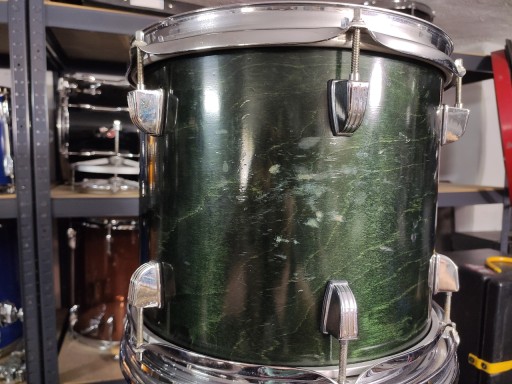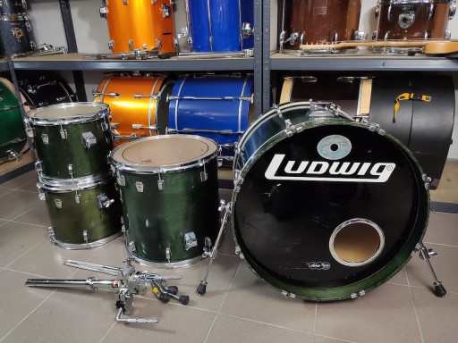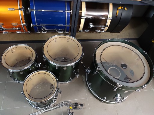 Bębny wyprodukowane w marcu 1999 roku w fabryce w Monroe U.S.A. Rozmiary bębnów to 22", 12", 13", 16", bębny są w dobrym stanie, posiadają troche obić na tomach i centrali, korpusy w środku i krawędzie w idealnym stanie, bębny brzmią pięknie, kolor Satin Green.