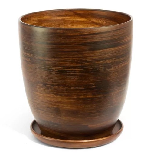 Efektowna donica ceramicznych o okrągłej podstawie.