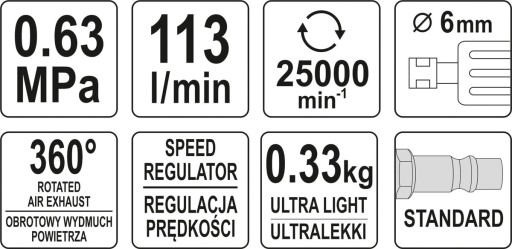 ПНЕВМАТИЧЕСКАЯ ПРЯМОШЛИФОВАЛЬНАЯ МАШИНА 25000 об/мин. 6 мм ЯТО