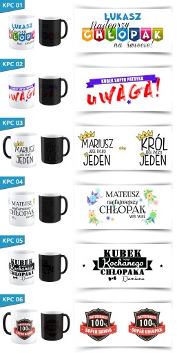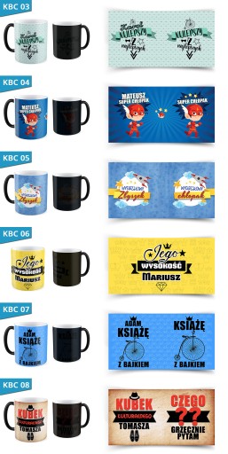 Po zalaniu gorącą cieczą na kubku pojawia się stopniowo wybrana grafika, która w normalny jego stanie zakryta jest kolorem czarnym. Po wystudzeniu zalanej cieczy kubek ponownie staje się czarny. Grafika przykryta jest w około 90%, to jeden z lepszych parametrów dostępnych na rynku.