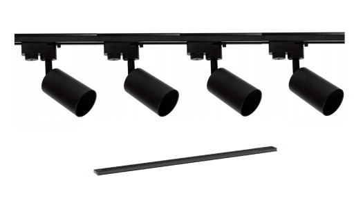 ZESTAW 4 REFLEKTORÓW NA WYMIENNE ŹRÓDŁO ŚWIATŁA GU10 I SZYNY 1,5 METRA ZASILAJĄCEJ ORAZ ZAŚLEPKĄ W ZESTAWIE.