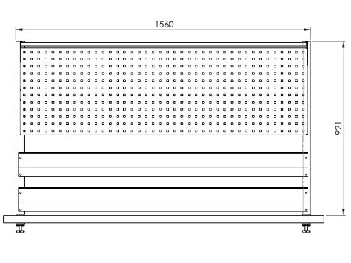 - wyposażona w ściankę perforowaną (perforacja kwadratowa) oraz dwa wsporniki do zawieszania pojemników na drobne elementy, każdy wspornik posiada 12 gniazd na pojemniki,