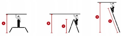 * Określenie “wysokość robocza” jest terminem podającym orientacyjną wysokość do jakiej można sięgnąć z drabiny w bezpieczny sposób. Są to wielkości sprawdzone, uśrednione, przyjmowane przez większość producentów drabin.