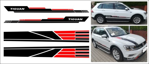 PASY BOCZNE I NA MASKĘ do VW TIGUAN. Naklejki wykonane są z wysokiej jakości polimerowej folii ploterowej ORACAL 551 dostępnej aż w 77 KOLORACH. Folia samochodowa o bardzo długiej trwałości i dużej wytrzymałości. Naklejki można pokrywać lakierem bezbarwnym (KLAREM).