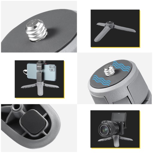 Najprostszy i najlepszy stołowy statyw. Bardzo stabilny udźwignie spory sprzęt, a do tego mieści się w dłoni.