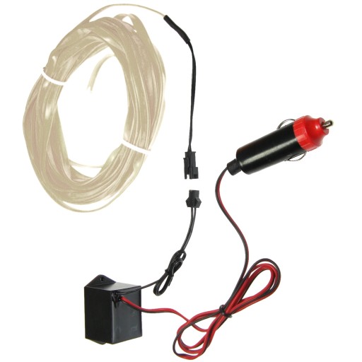 Elektroluminescencyjny przewód świecący EL WIRE 12V w kolorze BIAŁYM o długości 10m do tuningu wizualnego.