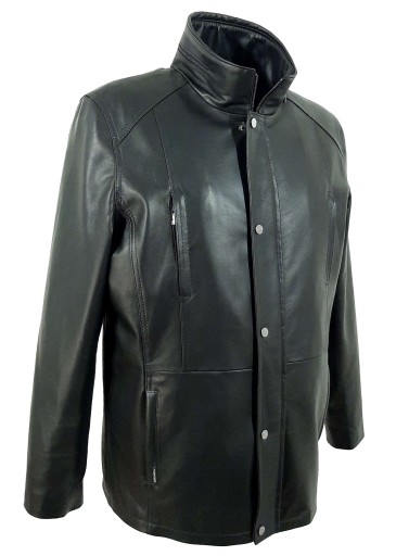Męska kurtka skórzana wykonana z naturalnych skór jagnięcych. Zapinana na zamek błyskawiczny pod szyję ze stójką, kryty plisą na zatrzaski, ocieplona z podpinką. Kieszenie zewnętrzne: dwie dolne pionowe, dwie górne na suwak. Rękaw prosty klasyczny, model o nowym ponadczasowym kroju, wygodny przeznaczony dla osób ceniących wygodę i elegancję.