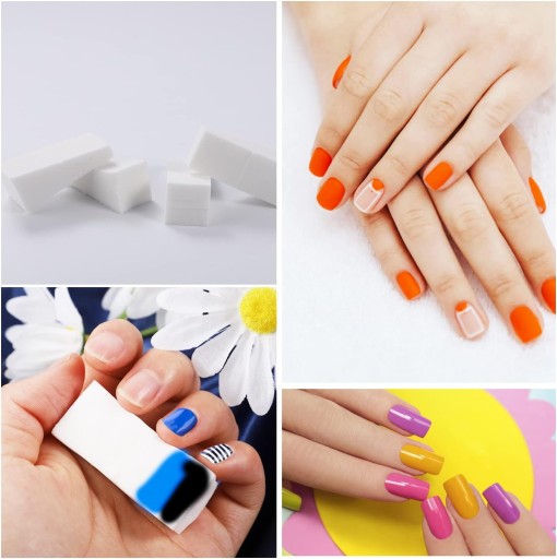 - gąbeczki posiadają ścięcia pomiędzy 35 a 45° dzięki czemu powierzchnia robocza gąbki jest równoległa do powierzchni paznokcia
