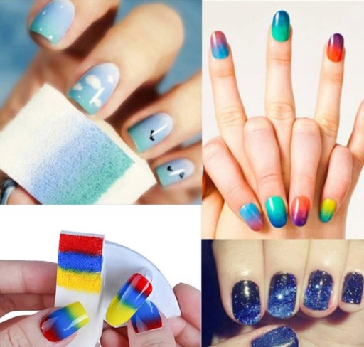 Do aplikacji cieniowanego koloru możesz wykorzystać wąską, jak i szeroką część gąbeczki, aby dopasować wzorek do kształtu paznokcia.