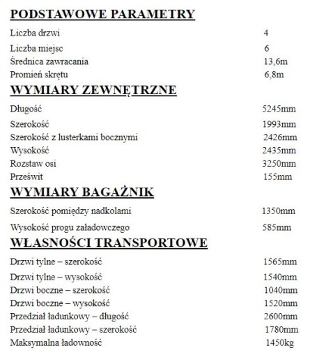 DŁUGOŚĆ PAKI ŁADUNKOWEJ 3265 mm