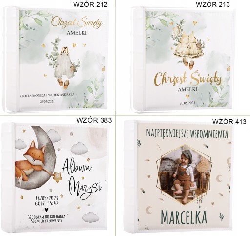 Album jest szyty, okładka wykonana z pięknym nadrukiem. Możliwość personalizacji, dodanie swojego zdjęcia i tekstu.