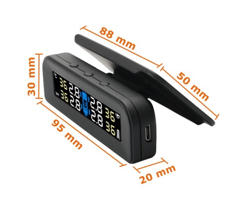 Inteligentny system do monitorowania ciśnienia w kołach w czasie rzeczywistym. Wyposażony jest w cztery bezprzewodowe czujniki nakręcane na zawór koła. Centralka urządzenia wyposażona jest w czytelny wyświetlacz informujący o aktualnym ciśnieniu i temperaturze w każdym z kół pojazdu. Centralka przygotowana jest do przyklejenia do przedniej szyby, panel solarny posiada taśmę samoprzylepną a ekran ma regulacje pochylenia względem panelu solarnego. Dzięki wyposażeniu w panel solarny, centralka w słoneczne dni jest dodatkowo doładowywana z energii słonecznej. Stacja wyposażona jest również w złącze micro USB które służy do ładowania baterii w okresach mniejszego nasłonecznienia. Naładowanie baterii do pełna oraz doładowywanie z energii słonecznej pozwala na pracę urządzenie od 6 do 9 miesięcy bez potrzeby podłączania ładowarki USB.
