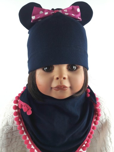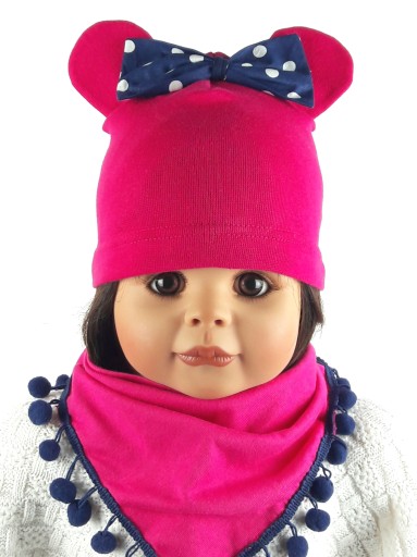 KOMPLET - SŁODKA, ŁADNIE NACIĄGAJĄCA SIĘ CZAPECZKA MYSZKA MIKI MINNIE Z USZAMI I KOKARDĄ PLUS APASZKA Z POMPONIKAMI DLA NIEMOWLĄT I DZIECI W 3 UNIWERSALNYCH ROZMIARACH OD 0 DO 3 M-CA ŻYCIA, OD 3 DO 12 M-CA ŻYCIA ORAZ OD 1 ROKU DO 10 LAT. PO ZAKUPIE PROSZĘ PODAĆ PRZEDZIAŁ WIEKOWY DZIECKA I KOLOR. NA KOLEJNEJ AUKCJI SAME CZAPECZKI - 8 INNYCH WZORÓW I KOLORÓW W TYM MODELU. NA INNYCH NASZYCH AUKCJACH SETKI PRZEDMIOTÓW I NAKRYĆ GŁOWY PROSTO OD PRODUCENTA. ZAPRASZAMY!!!