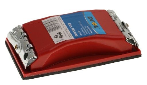 - Część robocza podklejona warstwą twardej, elastycznej mikrogumy, zaopatrzony w szerokie, silne sprężynowe uchwyty do szybkiego i pewnego mocowania materiału ściernego.