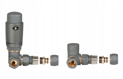 Ekskluzywny grafitowy komplet termostatyczny osiowy głównie przeznaczony jest do podłączenia grzejników łazienkowych dekoracyjnych, ale sprawdzi się również przy innych grzejnikach.