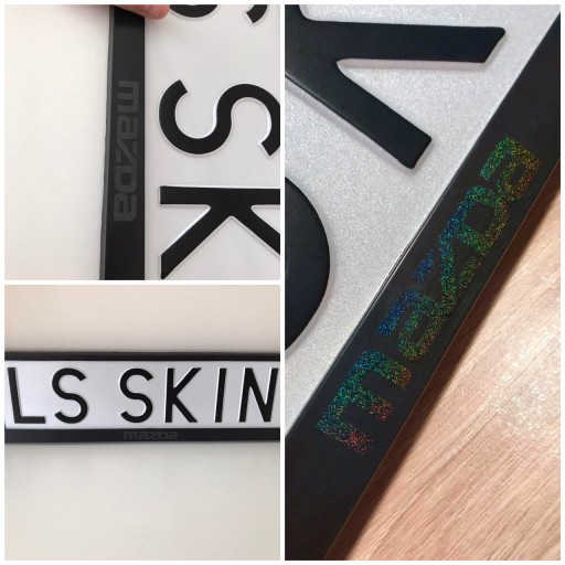 Aukcja dotyczy ramki tablicy rejestracyjnej UE koloru czarnego z napisem Mazda w kolorach do wyboru