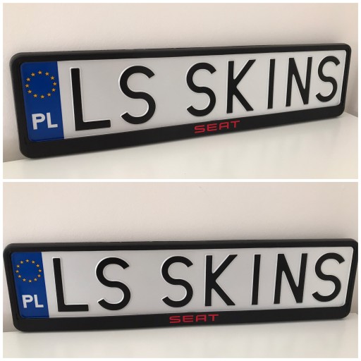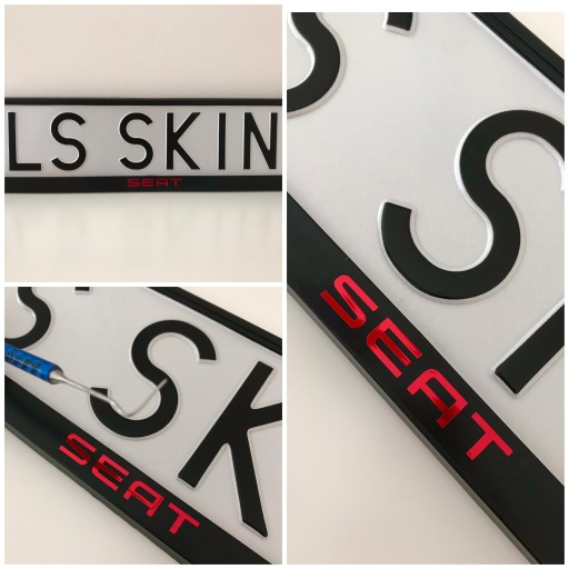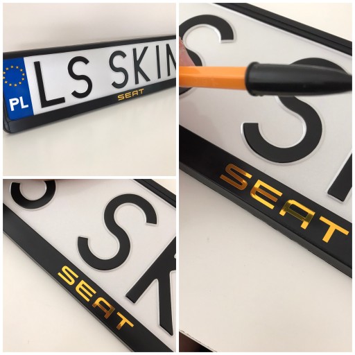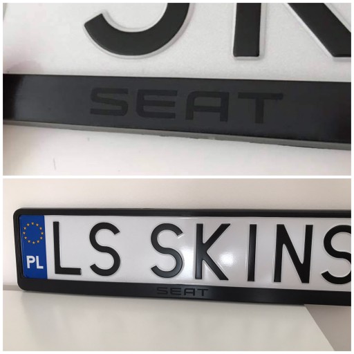 Aukcja dotyczy ramki tablicy rejestracyjnej UE koloru czarnego z napisem Seat w kolorach do wyboru