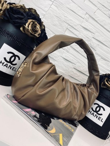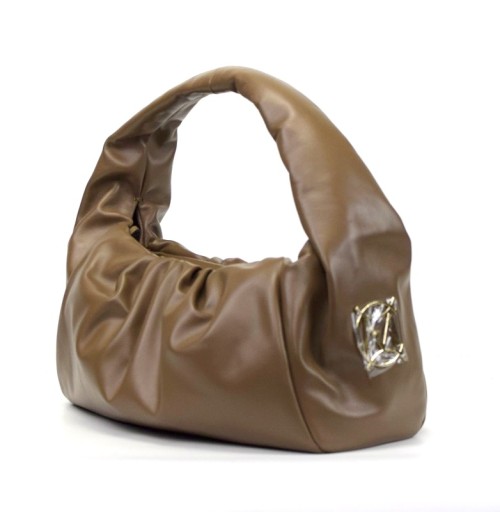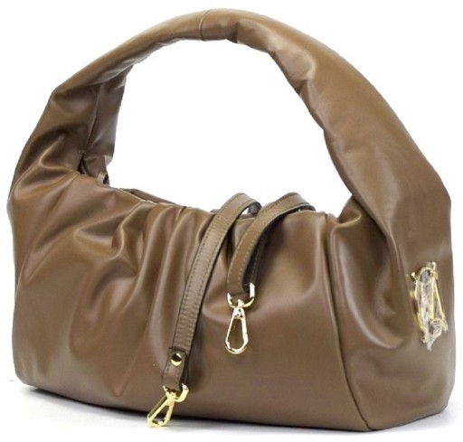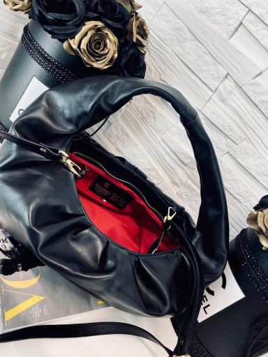 Marszczona torebka. wykonana w całości z mięciutkiej, gładkiej, lekko błyszczącej skóry naturalnej.