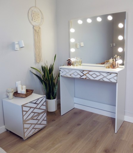 Toaletka posiada 12 żarówek led o barwie neutralnej i mocy 4 W tworząc idealne warunki oświetleniowe twarzy.