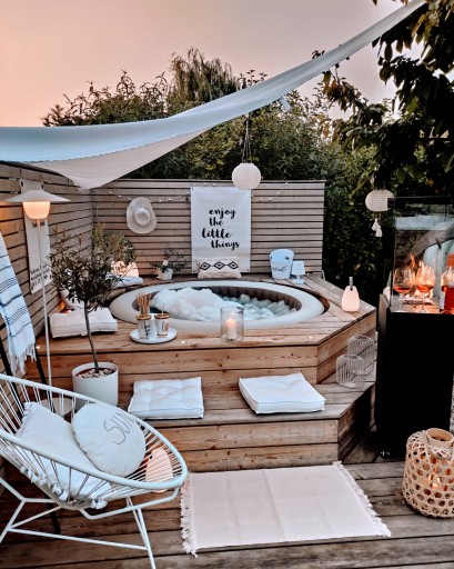 Płomień, który wiruje i załamuje się rzucając delikatne, złote światło, uczyni różnicę między statycznym, czarno-białym tarasem a żywym, ciepłym miejscem.