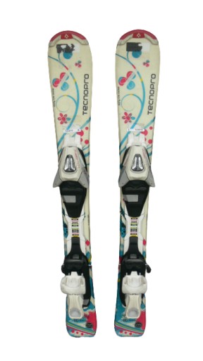 Narty używane dziecięce( nr kat.7/20) TECNO PRO SWEETY dł. 80cm ; taliowanie 95-66-86 ; z wiązaniami TECNO PRO TC45(zakres 0,5 - 4,5), na dł. skorupy buta 197 - 256mm.